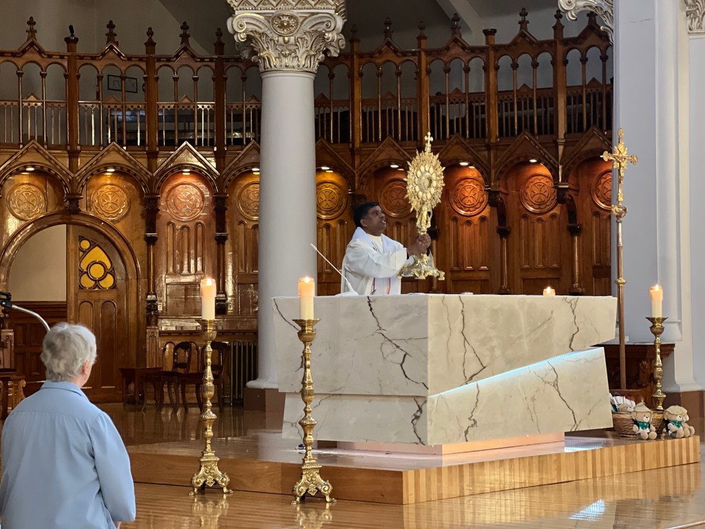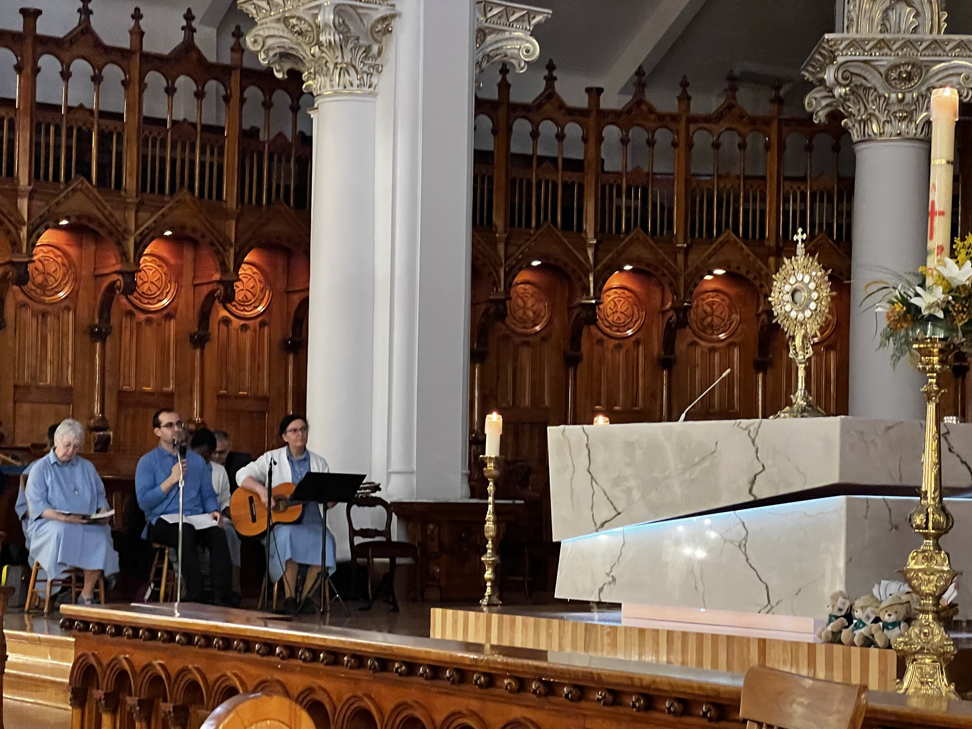 Petits chants, silence, adoration eucharistique