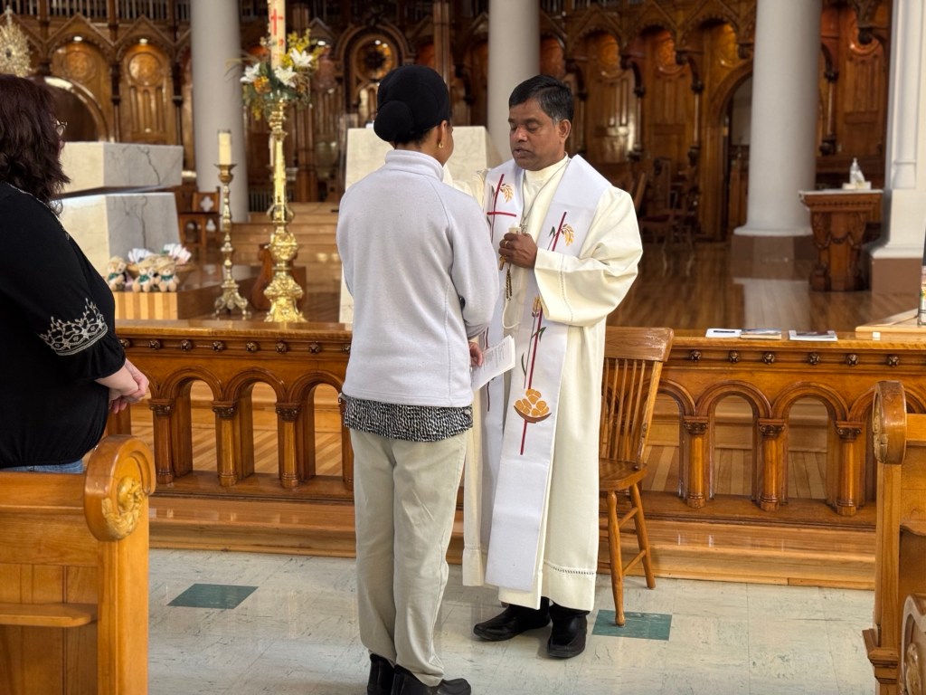 Bénédiction avec l’huile de saint Joseph par le Père Arul Jayaraj, c.s.c.