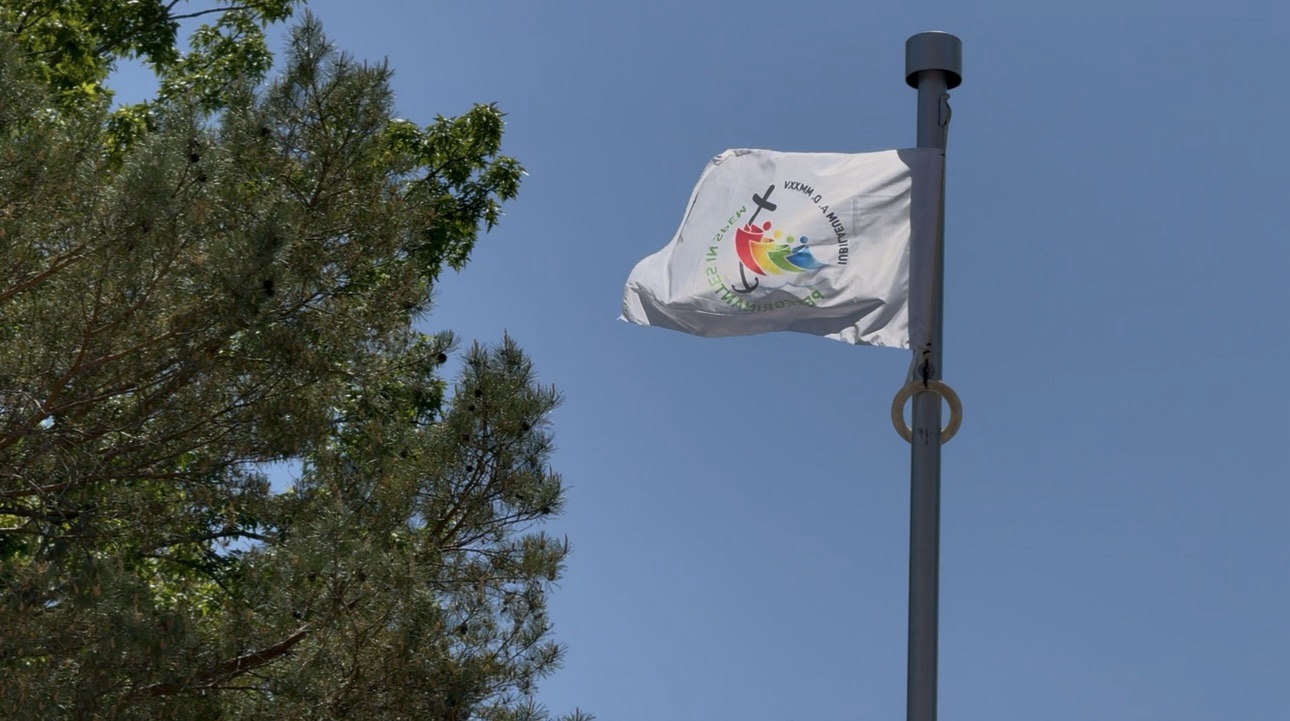 Levée du drapeau avec M. Daniel D’Amours, Mgr Christian Rodembourg, et la présence du Peuple de Dieu. Ouverture du 24 heures pour le Seigneur.